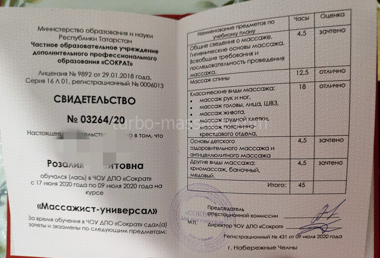 Высшее образование. ИУЭП г. Казань, школа массажа "Сократ"